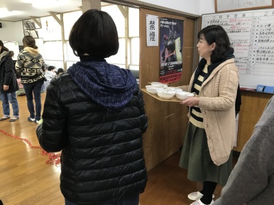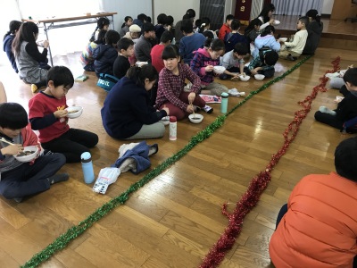 最後は、お楽しみのぜんざい会。6年生がついてくれた餅で民生委員の方々が大きな鍋でたくさん準備してくださいました。お替わりをしたお友達もいましたよ。甘くてとてもおいしかったですね。