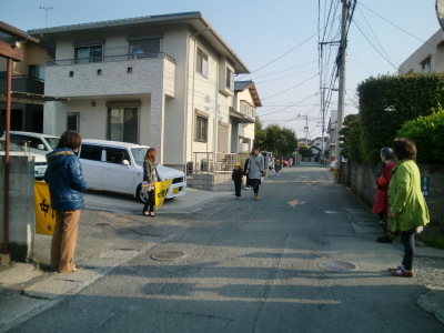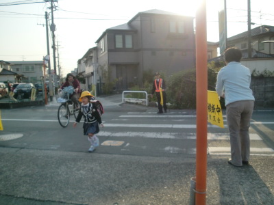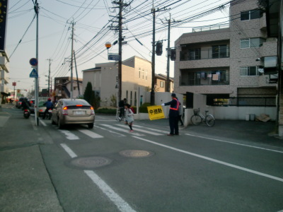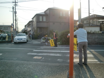 指導員の方々は朝7時から車の通りが多い交差点などに立っておられた様ですが、みんな元気で、いつもの登校時間よりかなり早く通り過ぎたようです。7時半くらいが一番通りが多いと聞いていた私がその時間に行った時には、もうすでにピークを過ぎていました。