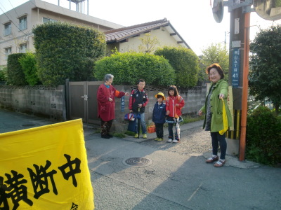 今日4月11日は、黄色の帽子をかぶった、可愛い姿が通学路にお目見え、町内の交通指導員の皆さんの、新年度初の出番の日でした。