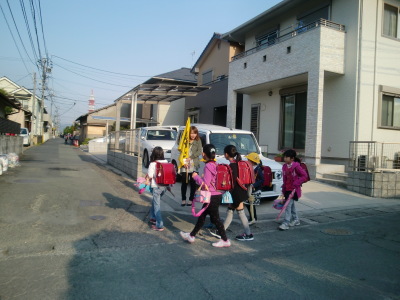 今日はPTAのお母さん方と民生委員のの方々も揃って要所々々に立って旗をあげて誘導されていました。