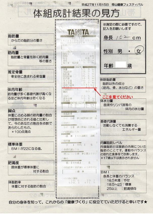 お話の後は体力チェックと体組成計に乗って脂肪量とかを測ってもらいました。