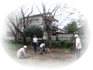 老人会では毎月13日を、町の広場と地蔵堂周辺の清掃と草取りの日と定め、有志の方々が早朝から集まって作業をしておられます。