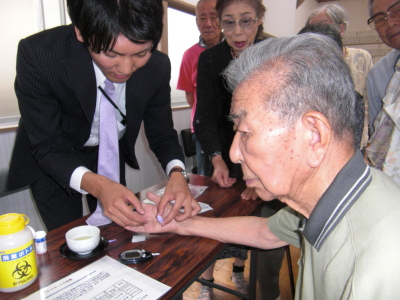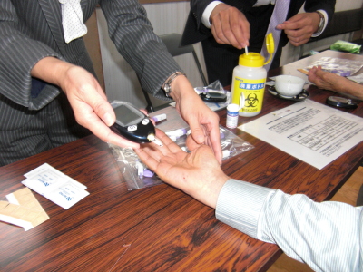 そのあとは、簡単にできる血糖値の検査を皆さん、してもらいました。