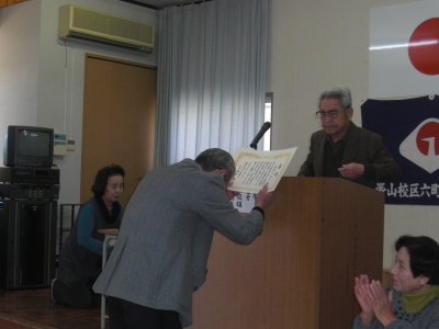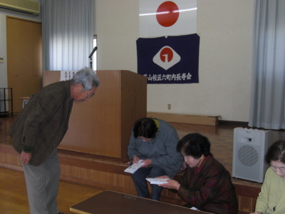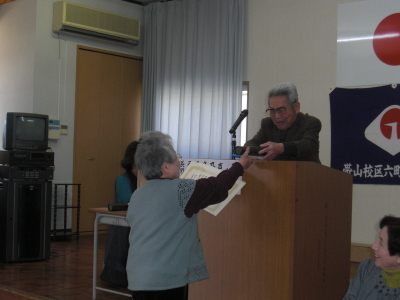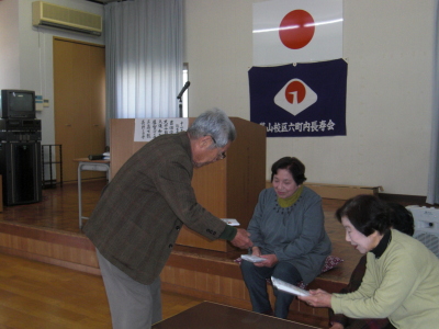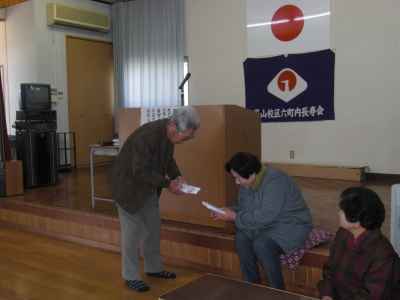 傘寿の方が3名に加え、ここの6町内長寿会は会員の増強に貢献があったとして表彰されたそうです。会員の方が楽しみに参加したくなる会だからこそ、先細りにならない、素晴らしい6町内長寿会なのですね。これからも皆さんお元気で、ますます会が発展することを願っています。