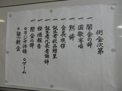 | 誕生者代表の謝辞・・・久保さん | さあこれから体操ですよ |