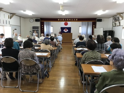 現在の6町内長寿会の会員数は56名です。昨年の総会時の会員数が58名でしたので2名の減、ご病気などで退会される方がおられる一方で、新しく入会された方は1名でした。