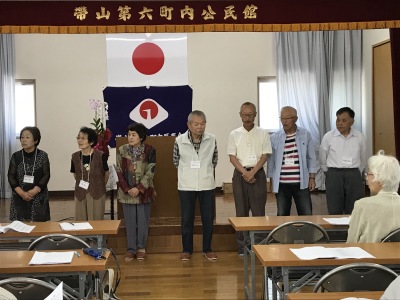 6町内の長寿会は、会員が会員をお互い気づかい、年齢を重ねても なお、現状維持ではなく何か新しいことに挑戦していこうとする、意 欲溢れる会です。家に閉じ籠らないで一緒に外気を楽しみましょう。