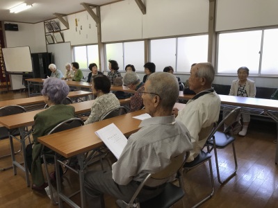 ●毎週水曜日は長寿会の日として公民館に集い、簡単な健康体操とお話し会を開催する。