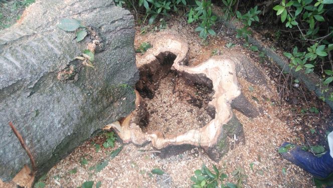 しかしながら、切り倒した切り株の空洞を見て、伐採して良かったと本当に思いました。