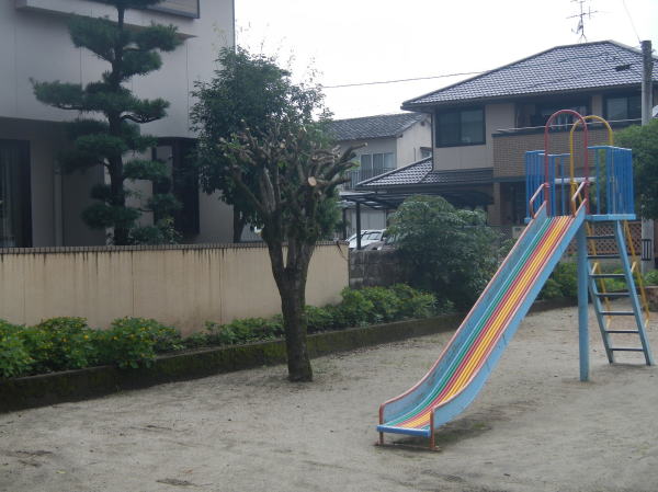 もう一本は、滑り台の横の木ですが、お隣の民家まで生い茂り、せっかくの庭木の成長を阻害しているようでした。