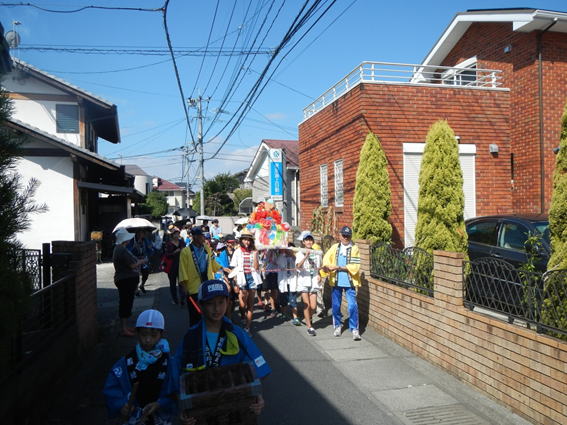 地蔵堂の近くのMさんと神輿を待つ間お話しさせていただきましたが、Mさんがお嫁に来られた当時は、当日は地蔵堂の前で奉納子供相撲が開催されていて、道路脇には出店もあり、それはそれは、大変にぎわっていたそうです。また、『ゆめマート』付近は竹林で、子供たちの格好の遊び場だったそうです。