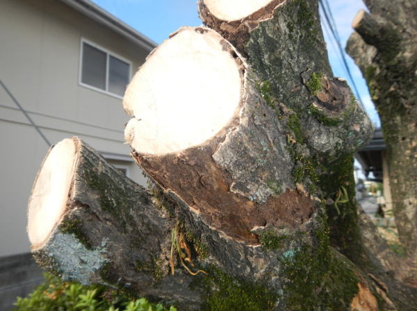『伐採した右側の木と夫婦樹(みょうとぎ)だったけん、枯れたのだろう』等など。いろいろご心配をおかけいたしました。