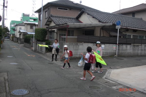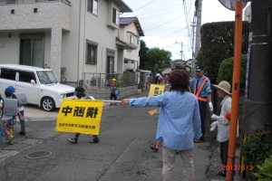 交通指導員の方々、民生委員の方々が町内数ヶ所の通学路で学童の交通指導をされていました。