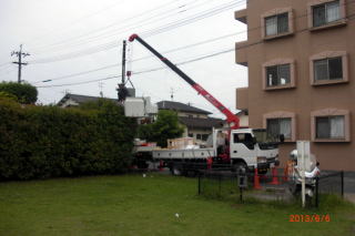 三郎一丁目の木製の防犯灯の痛みが激しかったので、金属製に変えました。