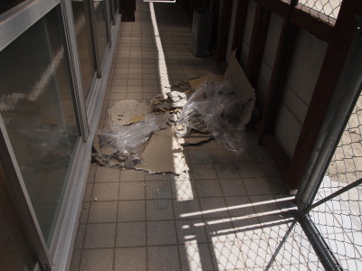 | ホールのガラス戸が割れました。 | ||