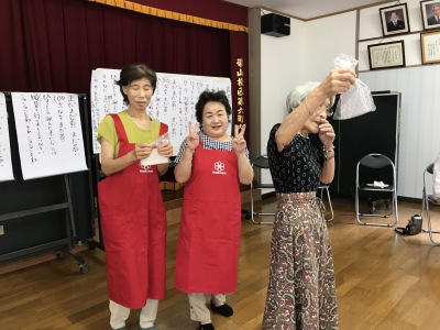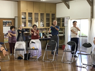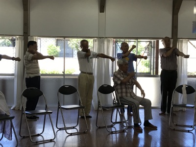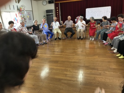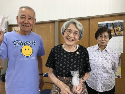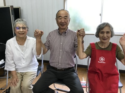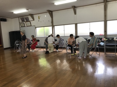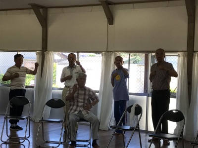 公民館ホールは笑いの渦でいっぱい、そしてクーラーは効いているんですが、声を出上げて大笑いするし、体を知らず知らずの内に動かすものだから、汗はびっしょりです。でも気持ちが悪い汗でなく、心地よい汗、みんな元気でしたね。