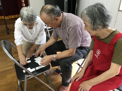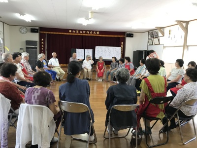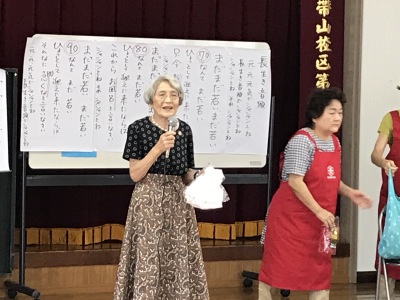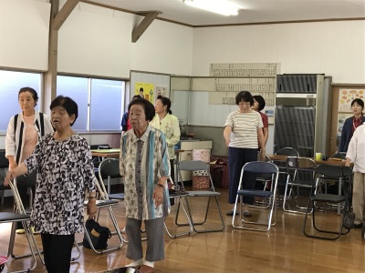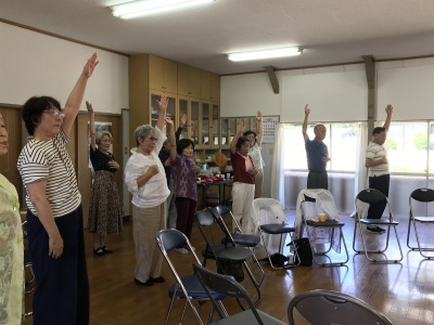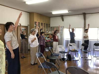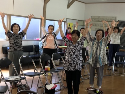 町内の方ならどなたでも参加できます。軽い体操で体を動かし、みんなで歌ったり踊ったり、脳トレで若返り。もっともっとたくさんの方に参加してもらいたいです。