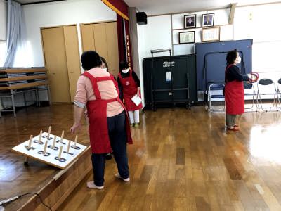 途中輪投げゲーム時はお一人お一人にゴム手袋をしてもらい、済んだらすぐ回収の徹底ぶりでした。