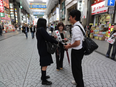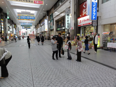 平成22年10月8日、帯山校区民生委員児童委員協議会では、赤い羽根街頭共同募金活動を実施しました。 熊本市下通りの繁華街で、通行中のたくさんの方々に募金のお願いの呼びかけを懸命にいたしました。 学生さんや若い人たちも気持ちよく立ち止まってくれたり、善意の温もりが通りにあふれているように感じました。 募金活動をしている者にも、協力してくださる方にも、顔には微笑みがいっぱい・・・・。 素晴らしい秋の一日でした。 民生委員児童委員協議会の皆様、ほんとにご苦労様でした。