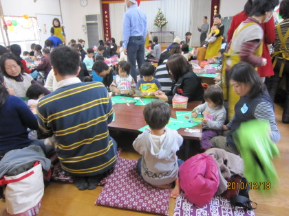 | たくさんの方が参加されました | お父さんも一緒にクリスマスグッズつくりです |