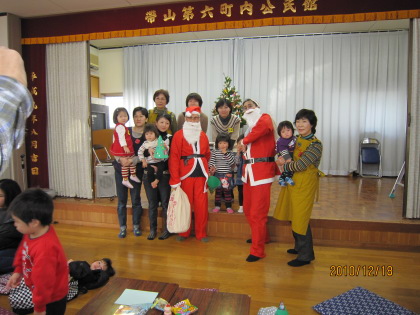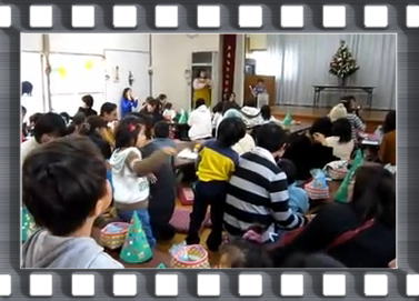今年は各町内ごとにサンタさんと一緒に記念写真を撮ったり、音楽に合わせて踊ったり、お母さんお父さんにお手伝いしてもらいながら、自分で作ったとんがり帽子を頭にかぶってとても嬉しそうでした。