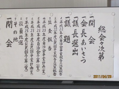 平成23年4月29日(金)、6町内公民館において、平成23年度第六町内自治会総会が開催されました。