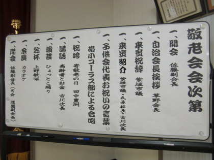 多彩な内容の楽しい敬老会を催してくださった、自治会の役員の方、婦人会、子供会、民生委員の皆さん、ほんとにありがとうございました。