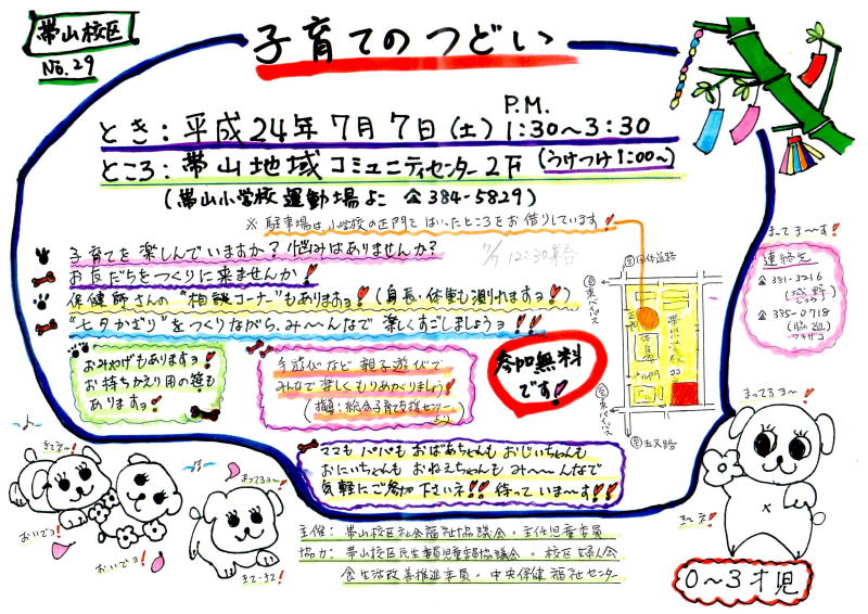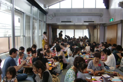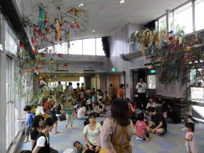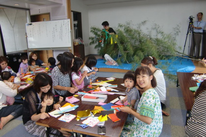 平成24年7月7日(土)、帯山校区社会福祉協議会主催子育ての集い「七夕まつり」が、コミュニティセンターで開催されました。