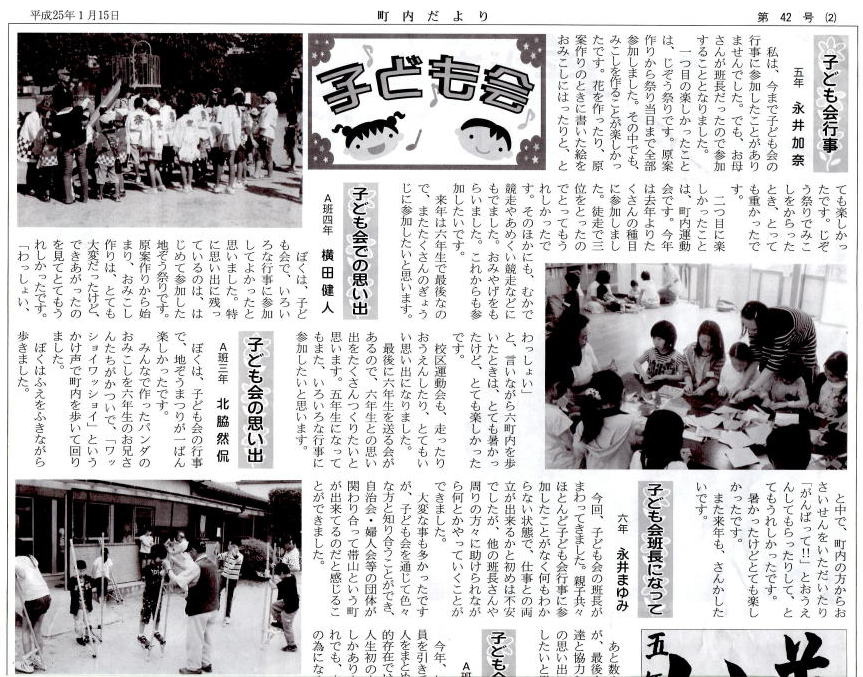 1月に6町内だよりが発行され、各家庭に配布されましたが、いつでも見られるようにホームページ にも掲載して欲しいとの要望が有りましたので、遅ればせながらアップいたしました。 思い出した時にご覧になってください。