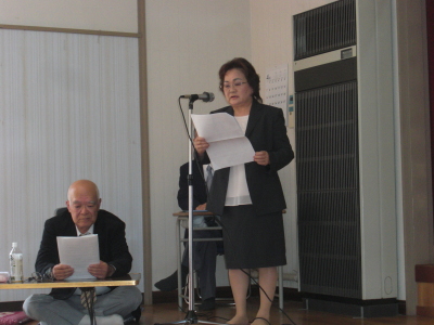 | 決算報告と予算について説明・・・緒方会計 | 総会に出席された方々です |