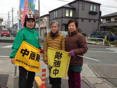 26年1月14日(火)は 町内の子供安全見回り隊の方々の新年初始動日でした。 学童の登下校時における安全を願って、ご婦人方のボランティアさんです。 町内には交通パトロール隊として、別に男性の方々にも巡回していただいていますが、 女性からのやさしい声掛けが、特に低学年のお友達には安心とともに嬉しいようです。 寒い中、ほんとに皆さんご苦労様です。これからもよろしくお願いいたします。