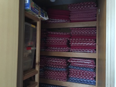 作業に汗だくになっておられました。倉庫の中にある古い低足テーブルと座布団をすべて一度出して入れ替えです。