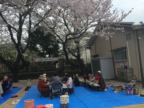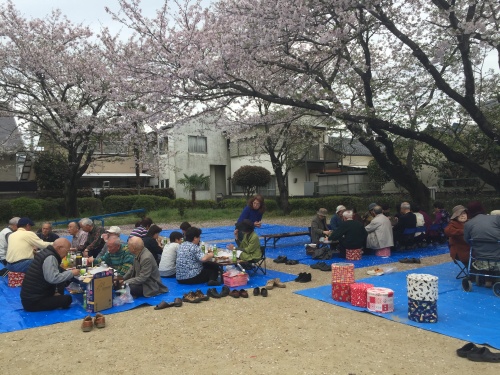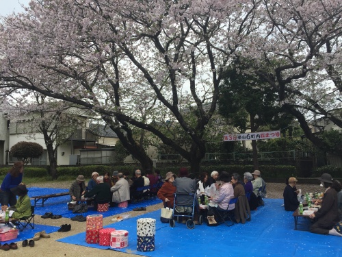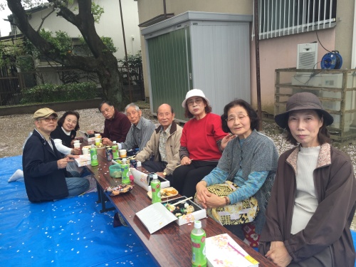満開を少し過ぎていましたが、花びらが、開いた弁当の上にひらひらを舞い降りてきて、とても風情がありましたよ。お弁当の後にはカラオケならぬアカペラで青春歌謡などを合唱しました。