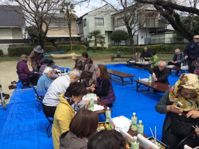 だいたブルーシートの上に集いながら花見の宴がスタートしました。