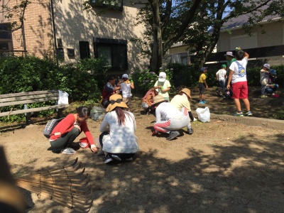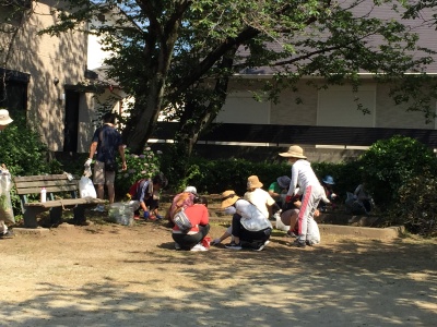 平成29年6月4日(日)は、町内一斉清掃の日で、子供会のお友達はじめ、町内の方々にたくさん集まっていただいて、公民館まちの広場、地蔵堂周辺、5丁目公園周辺の除草作業に汗を流しました。大勢で作業するので、1時間程度ですが、いつも見事に庭がよみがえります。梅雨入り前のこの時期の大切な行事です。