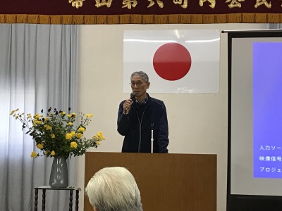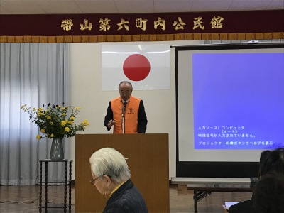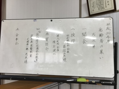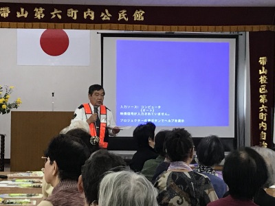今年のメインの講演は、「高齢者の交通安全教室」。熊本県東警察署交通第一課、光本様からお話をいただきました。身近な例を挙げてお話しいただいたので、皆さん熱心に耳を傾けておられました。