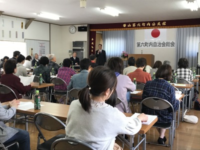 この総会には町内の隣保組の組長さんが住民の代表として参加されることになっています。6町内は世帯数が多くこの総会に誰でも参加するということができませんので、何年かに一回の機会、隣保組長になった時はできるだけ参加して我が町の運営に関心を寄せたいところです。