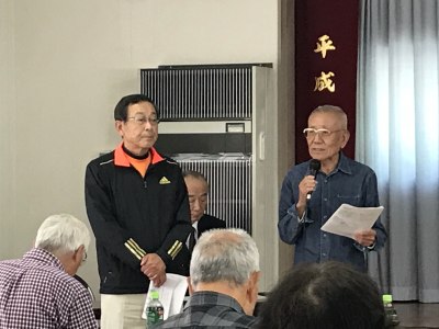 | 事業報告と計画の説明 緒方自治会長 | 会計決算報告と予算説明 南会計 |