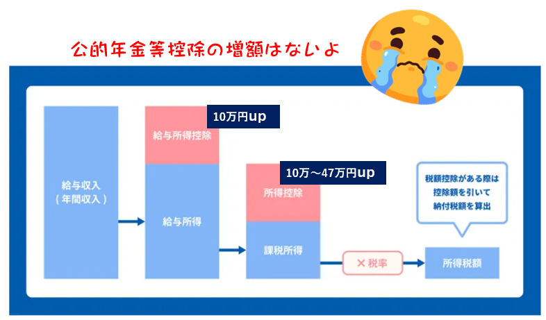 給与所得控除は10万円上がったのに公的年金等控除は変更がなかったことです。